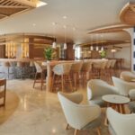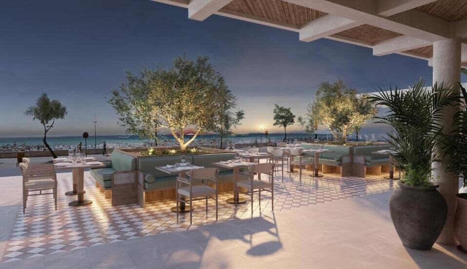 La iluminación es el alma de cualquier espacio hotelero. Por eso rediseñamos completamente el sistema del Lobby bar, integrando iluminación sobre el techo acústico que crea ese ambiente acogedor que buscan los huéspedes al final del día. En la terraza de planta baja, instalamos tiras LED superiores e inferiores en los pilares, junto con iluminación decorativa en la zona inferior, transformando el espacio en un lugar mágico para las noches mediterráneas.