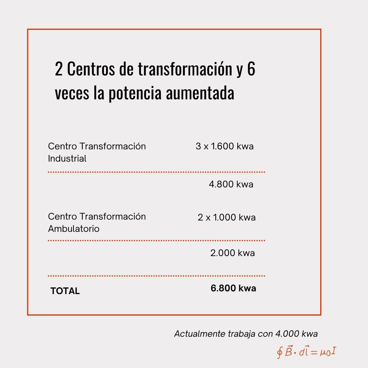 Todo ello suma un total de 6.800 kwa. Actualmente trabaja a una potencia de 4.000 kwa.