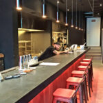 Nuestro Team Talat de Project Managers ha realizado el diseño y gestión integral de este proyecto, cuya elección por una arquitectura desnuda atractiva se da por su valor estético, por los bajos costes de construcción y por la menor huella ecológica: un ladrillo visto directamente pintado de negro, solados de hormigón pulido, granito absolut black para encimera, imitación madera quemada para frontal de barra, techo acústico rockfon.